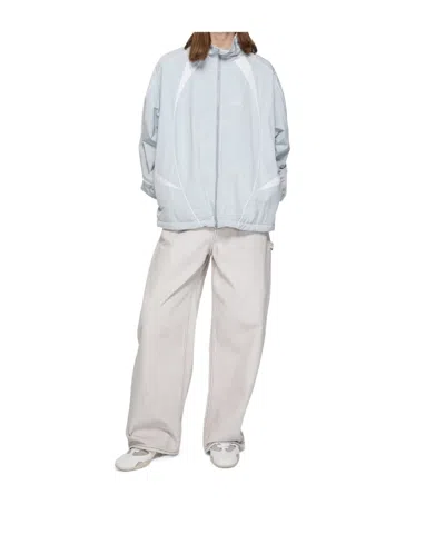 light blue zip fastening logo embroidered high neck long sleeved elasticated cuffs