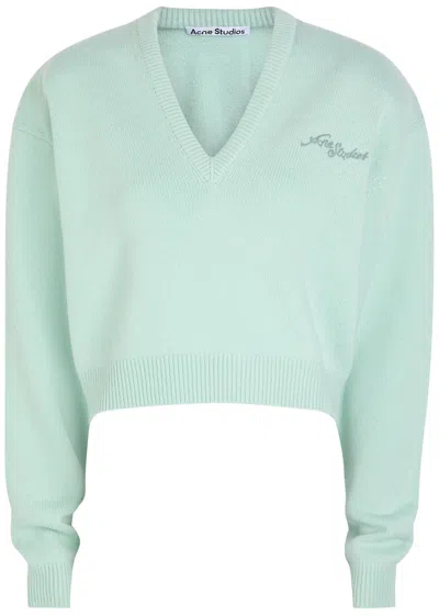 ACNE STUDIOS Logo-embroidered Wool Cropped Jumper In Blue
