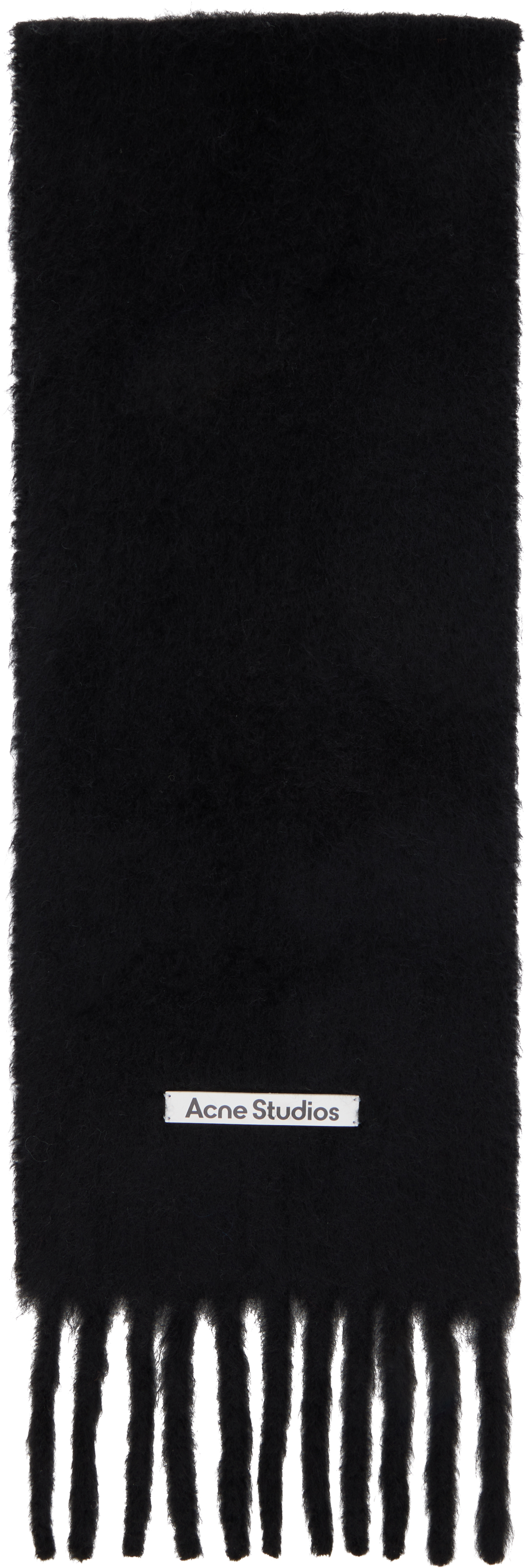 ACNE STUDIOS Logo-patch Fringed Scarf In Black