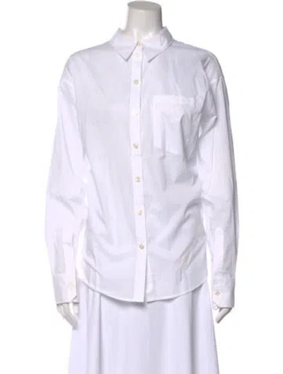 Acne Studios Button-Up Top White Long Sleeve with Collar Designer Fit: Tops by Acne Studios typically fit true to size. | Acne Studios Long Sleeve Button-Up Top in White, Women's US6, FR38 | M