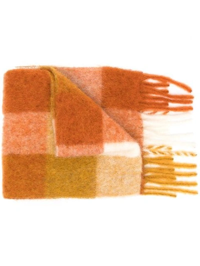 ACNE STUDIOS Multi Check Alpaca-blend Scarf In Orange