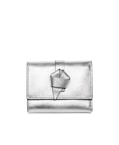 Silver, front knot details, internal engraved 'Acne Studios' seal, card slot, change zipper pocket.