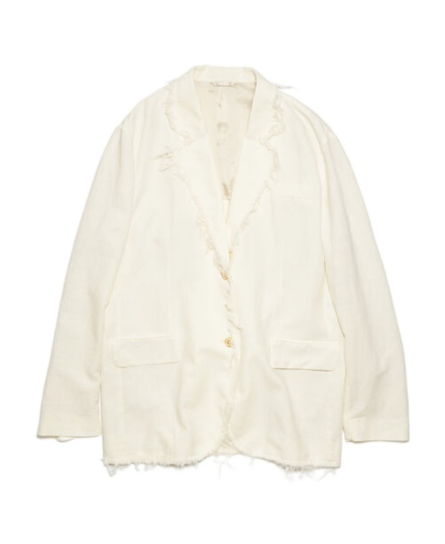 Warm white single-breasted suit coat Single breasted buckle Button closure Rough edge detail Chest rimmed pocket
