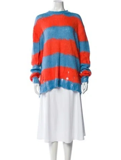 Acne Studios Nylon Pullover Blue & Orange Striped Long Sleeve with Bateau Neckline Fit: Knitwear by Acne Studios typically fit true to size. | Acne Studios Nylon Striped Sweater in Blue/Orange, Women's S