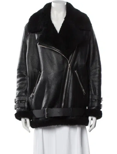 Acne Studios Shearling Fur Jacket Black Fur Trim & Pointed Collar Zip Pockets & Zip Closure Designer Fit: Jackets by Acne Studios typically fit true to size. | Acne Studios Shearling Fur Jacket in Black, Women's US2, FR34 | XS