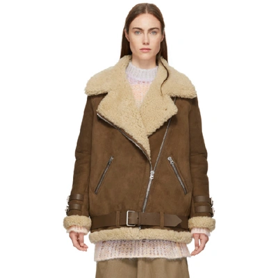 Acne Studios Velocite Suede brown/white is a thick, soft shearling jacket with straps and a belt in calf leather. Exposed shearling collar, cuffs, and hem Diagonal zipper closure Collar strap, Sleeve straps, and belt in calf leather with painted edges Two zippered Pockets Topstitched Acne Studios Velocite Suede brown/white is a thick, soft shearling jacket with straps and a belt in calf leather. 100% Lamb shearling Contrast:100% Calf leather Exposed shearling collar, cuffs, and hem Diagonal zipper closure Collar strap, Sleeve straps, and belt in calf leather with painted edges Two zippered Pockets Topstitched Acne Studios Velocite Suede brown/white is a thick, soft shearling jacket with straps and a belt in calf leather. 100% Lamb shearling Contrast:100% Calf leather