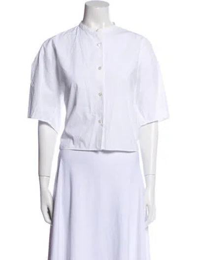 Acne Studios Button-Up Top White Short Sleeve with Collar Button Closure at Front Designer Fit: Tops by Acne Studios typically fit true to size. | Acne Studios Short Sleeve Button-Up Top in White, Women's US2, FR34 | XS