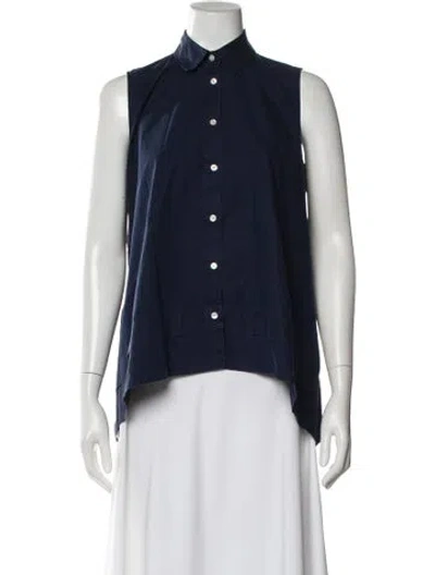 Acne Studios Button-Up Top Blue Sleeveless with Collar Designer Fit: Tops by Acne Studios typically fit true to size. | Acne Studios Sleeveless Button-Up Top in Blue, Women's US0, FR32 | XS