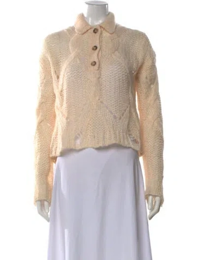 Acne Studios Cropped Sweater Neutrals Long Sleeve with Collar Button Closure at Front Fit: Knitwear by Acne Studios typically fit true to size. | Acne Studios Sweater in Neutrals, Women's XS