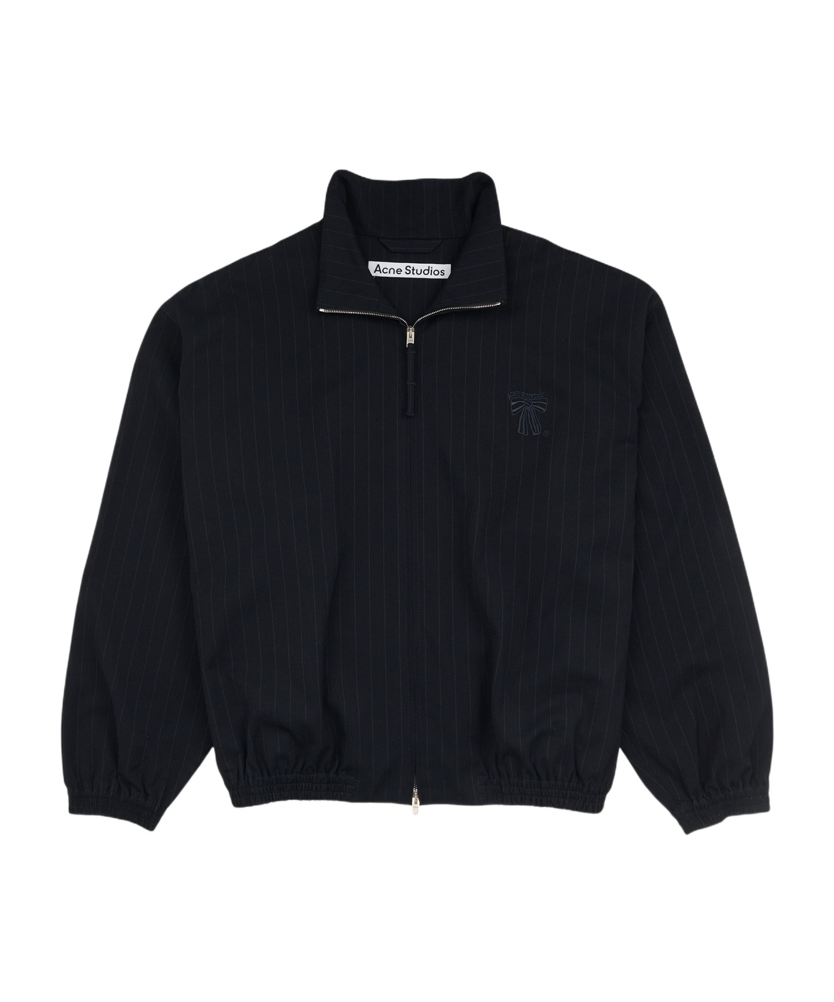 Acne Studios Navy-Blue Jacket. Crafted in viscose, polyester and elastane blend. Stand-up collar, front zipped fastening, chest embroidered logo, side pockets, dropped shoulders, long sleeves, elasticated cuffs and hem, tonal stitching, pinstriped pattern all-over. Viscose | 97%VISCOSE 2%ELASTANE 1%POLYESTER SKU: B90849Blue Our Products Are 100% Genuine. In All Cases We Stand By The Authenticity Of Every Product Sold On Our Site.