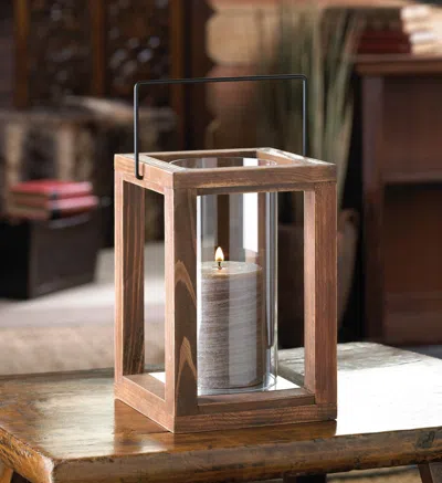 Place a candle or LED of your choice inside the lantern to illuminate your space in a soft and serene glow. Use to create a centerpiece for parties or special events, display on a countertop or coffee table, or light up your outdoor space with flickering light. This lantern is the perfect way to enhance your home's décor! The lantern weighs 1.8 lbs. and measures 6.25 inches by 6.25 inches by 9 inches. Glass cylinder - 3 7/8" x 3 7/8" x 7 3/4" high. For use with pillar candles up to 3" in diameter. This beautifully crafted lantern made of glass and wood - pine and iron is both durable and stunning. Either hanging or stationary, this lantern will cast beautiful light wherever you display it! Removable glass and wood panel allows the easy replacement of your choice of candle or LED to light up the space and create a memorable home décor piece. To clean your lighting décor dust lightly or wipe with a damp cloth as needed. Let the country charm shine! This rustic and stunning candle lamp features a wood frame that holds a tall clear glass cylinder inside. Place the candle of your choice inside the cylinder and enjoy the warm glow indoors or out.
