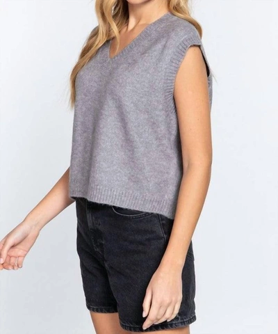 ACTIVE BASIC V-neck Sweater Vest In Gray In Grey