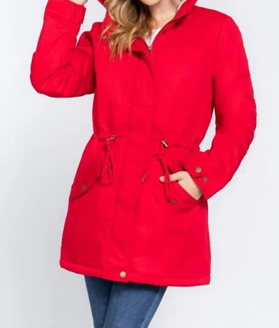 ACTIVE USA Fleece Lined Fur Hoodie Utility Jacket In Red