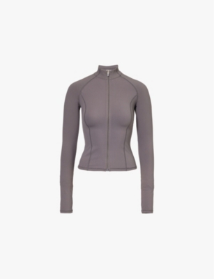 Ultimate Zip-up Stretch-jersey Top In Dark Grey