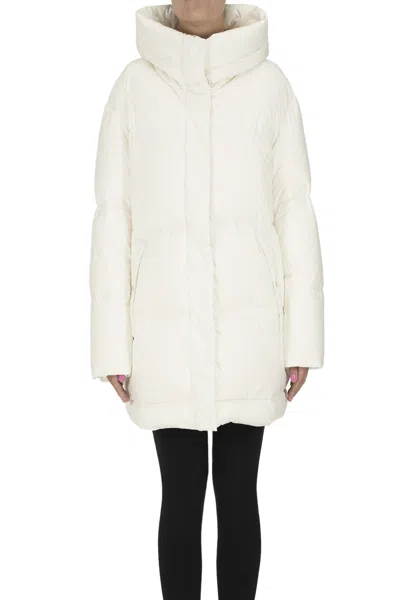 Quilted hooded down jacket, zip-fastening and snap-fastenings at front Sample size: 38 COMPOSITION: 100% Polyester (lining) 100% Polyester (padding) 95% Goose down 5% Goose feathers Made in China