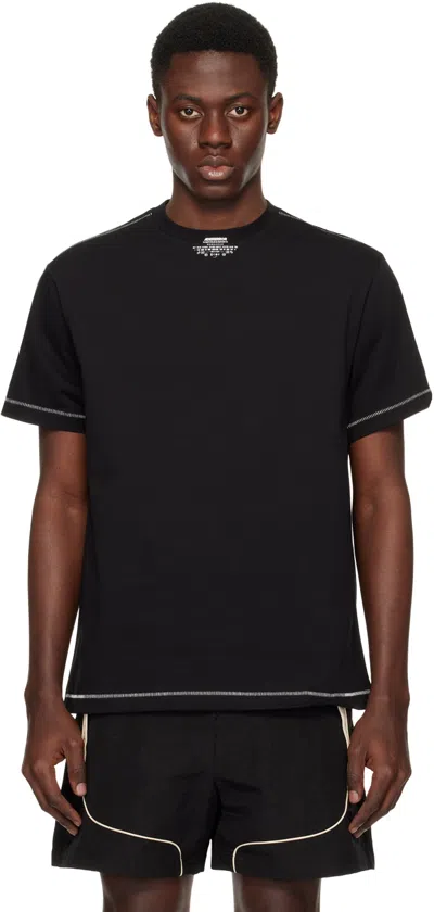 Cotton-blend jersey T-shirt. Topstitching throughout. · Rib knit crewneck · Logo graphic printed at chest · Logo patch at cuff · Logo flag at back · Contrast stitching in white Supplier color: Noir