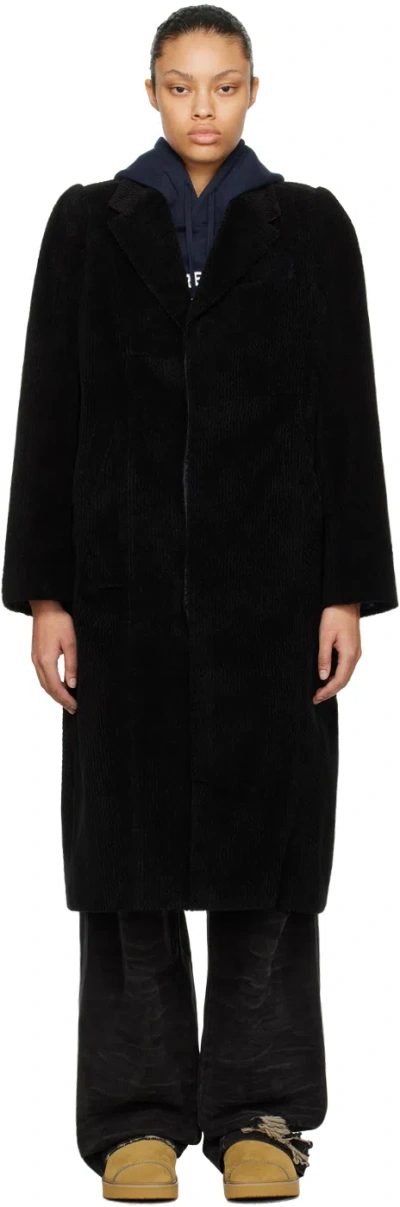 black cotton corduroy logo patch at the sleeve notched lapels front button fastening long sleeves straight hem