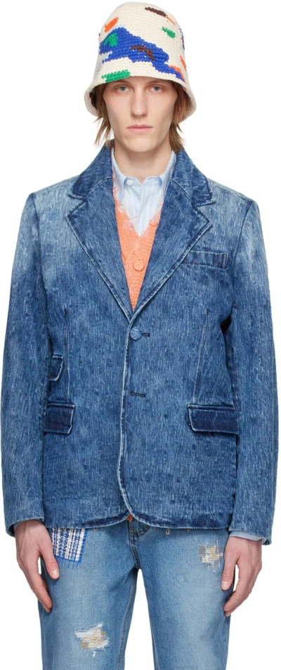 ADER ERROR Blue Notched Denim Blazer