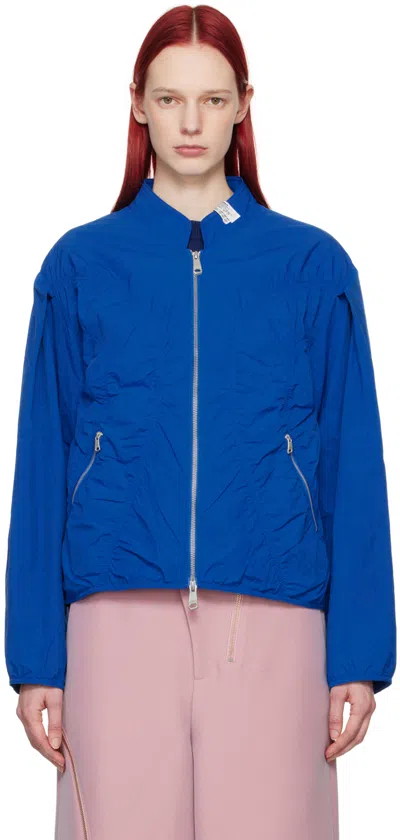 Nylon taffeta bomber jacket. Gathering and ruching throughout. · Logo patch at stand collar · Two-way zip closure · Zip pockets · Logo flag at back · Full satin lining Supplier color: Blue