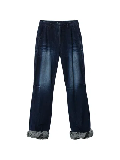 blue faded effect cuffed hems front slip-pockets back patch-pockets wide leg