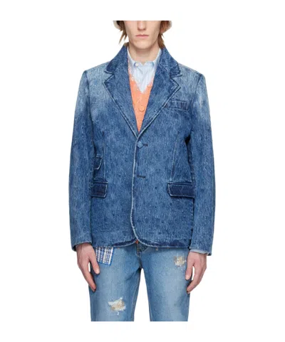 ADER ERROR Flat Lapel Collar Button Denim Coat In Blue