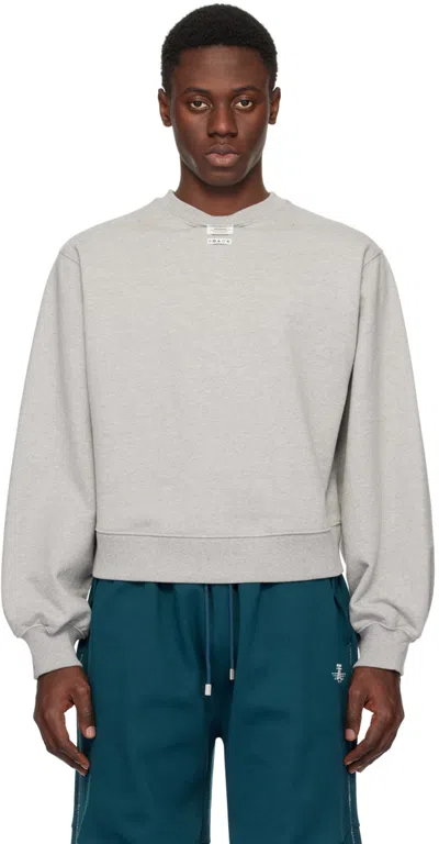 French terry sweatshirt. · Logo patches at pinched crewneck · Rib knit hem and cuffs · Dropped shoulders · Logo flag at back Supplier color: Gray
