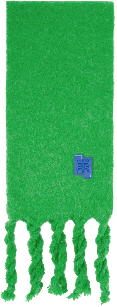Brushed woven wool-blend scarf in green. · Logo patch at face · Fringed detailing at ends · H44 x W22.5 in Supplier color: Green