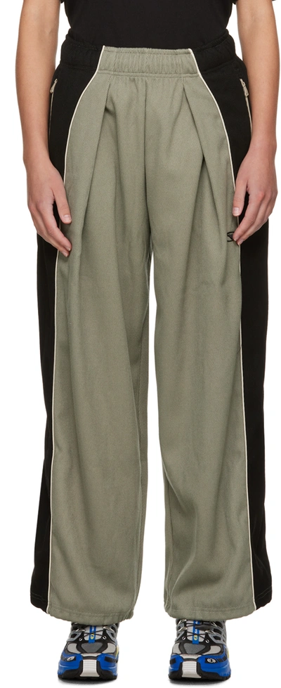 Wide-leg polyester-blend twill and stretch polyester-blend twill track pants. Faux-leather piping throughout. · Paneled construction · Concealed drawstring at elasticized waistband · Two-pocket styling · Pleats at front and back · Embroidered logo patch at front · Concealed bungee-style drawstring at cuffs · Logo flag at back leg Supplier color: Khaki