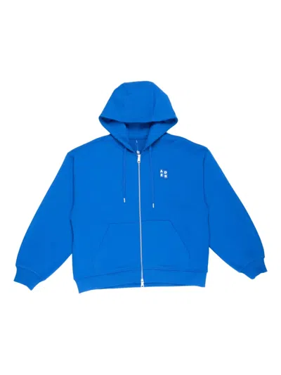 cerulean blue front two-way zip fastening front pouch pocket drawstring hood ribbed cuffs and hem