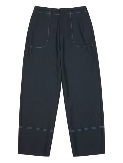 dark grey concealed front fastening two side inset pockets two rear welt pockets contrast stitching