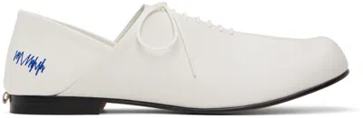 Grained leather oxfords in white. · Square toe · Inverted pleat at vamp · Lace-up closure · Logo embroidered at outer side · Pull-loop at collapsible heel counter · Logo embossed at padded leather footbed · Grained leather and pigskin lining · Leather block heel with rubber injection · Leather sole Supplier color: White