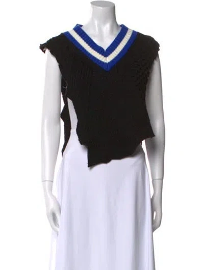 ADER error Wool Cropped Sweater Black Sleeveless with V-Neck Fit: Knitwear by ADER error typically fit true to size. | ADER error Wool V-Neck Sweater in Black, Women's S