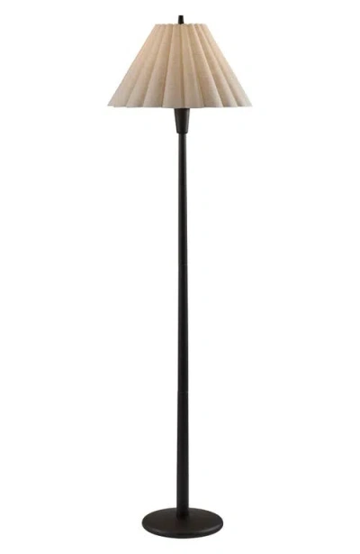 The rounded edges of the base echo the scalloped fabric shade of this floor lamp that warmly illuminates your space with a modern, classic style.Features: Three-way rotary socket switch.Sizing information: 60.75" x 17"; 5.5 lb. Assembly required Wood/textile Imported