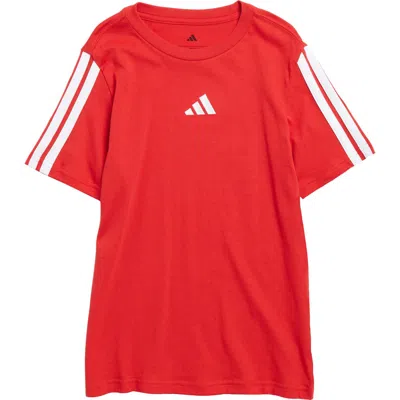 Adidas Kids' 3-stripe Cotton Jersey T-shirt In Scarlet