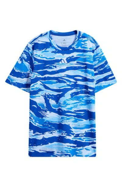 Adidas Kids' Camo Print Cotton T-shirt In Brite Blue