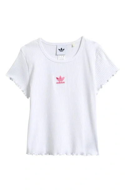 ADIDAS ORIGINALS Kids' Embroidered Trefoil Lettuce Edge Rib T-shirt In White