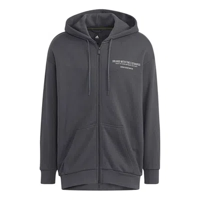 Men's Adidas Alphabet Printing Pattern Drawstring Pullover Hooded Long Sleeves Jacket Gray