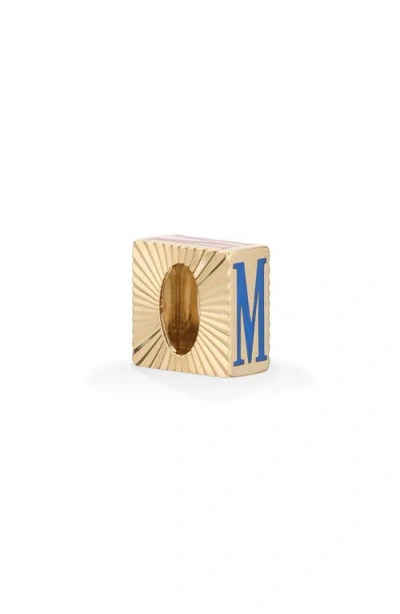 A golden block bead detailed with an initial in different colors along the sides is a playfully chic way to personalize a chain or slim hoops already in your collection. Enhancer only; chain sold separately 10mmL x 5mmW 9k gold/enamel Imported