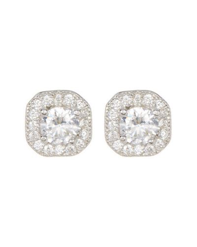 Sparking Swarovski crystals adds an elegant touch to these halo stud earrings with a vintage flair. 6mm L x 6mm W Post back White rhodium plated brass, Swarovski crystal Polish gently with cloth Imported