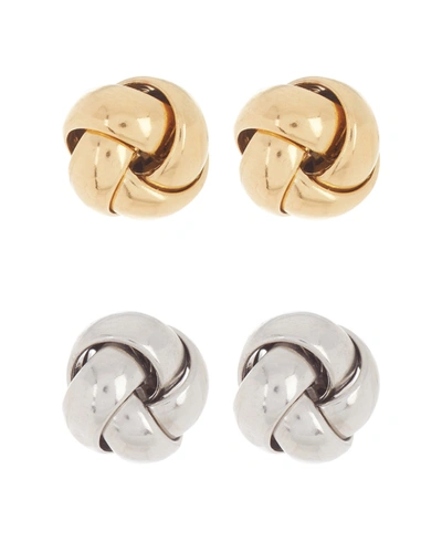 Luxury trend jewelry for your everyday. Adornia Knot Stud Set silver gold 14k yellow gold plated brass, white rhodium plated brass Post backs require pierced ears.5" x.5"