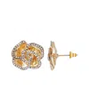 ADORNIA Plated Crystal Encrusted Flower Stud Earrings In Gold