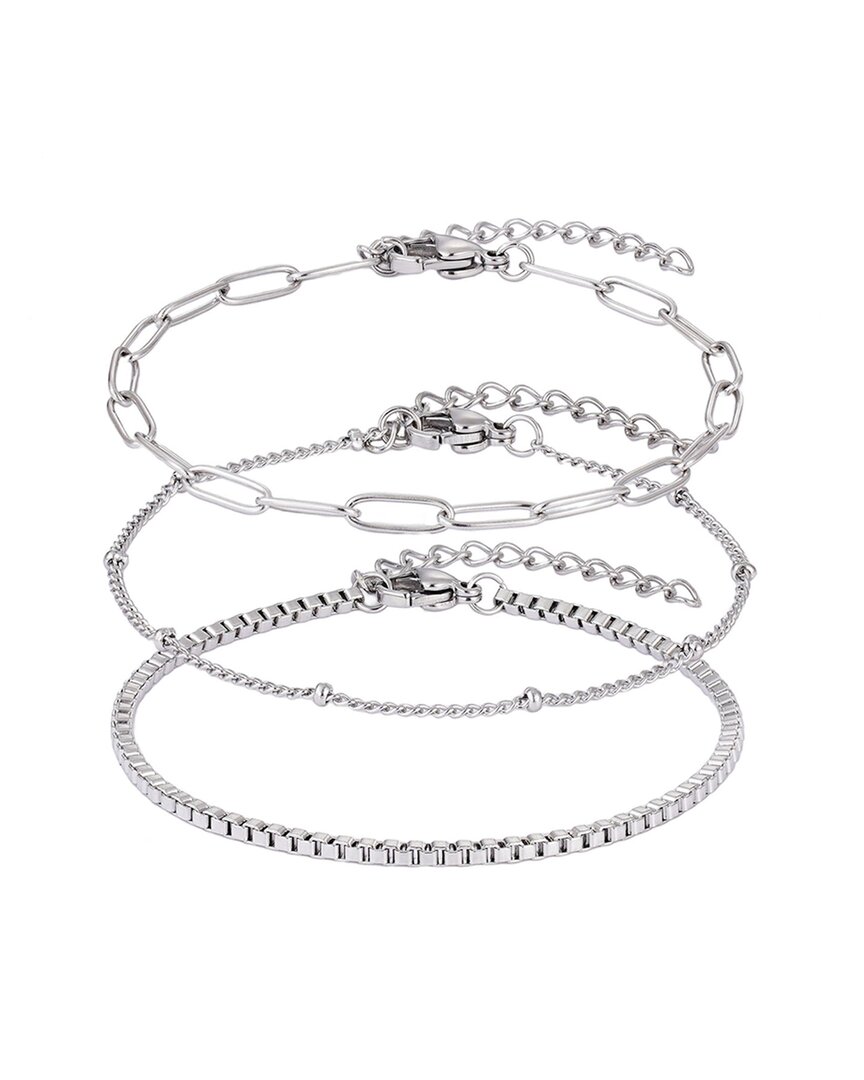 ADORNIA Silver Plated Stainless Steel Tarnish-resistant 3-chain Bracelet Set In Metallic
