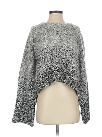 AEMI+CO Pullover Sweater, Size: Small. Item Details: Gray, Metallic Pattern, One Shoulder Neckline, 3/4 Sleeve, Glitter, Women's Tops, Acrylic/Polyester