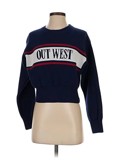 Aerie Pullover Sweater, Size: X-Small. Item Details: Blue, Color Block Pattern, Crew Neck, Long Sleeve, Junior Tops, 100% Cotton
