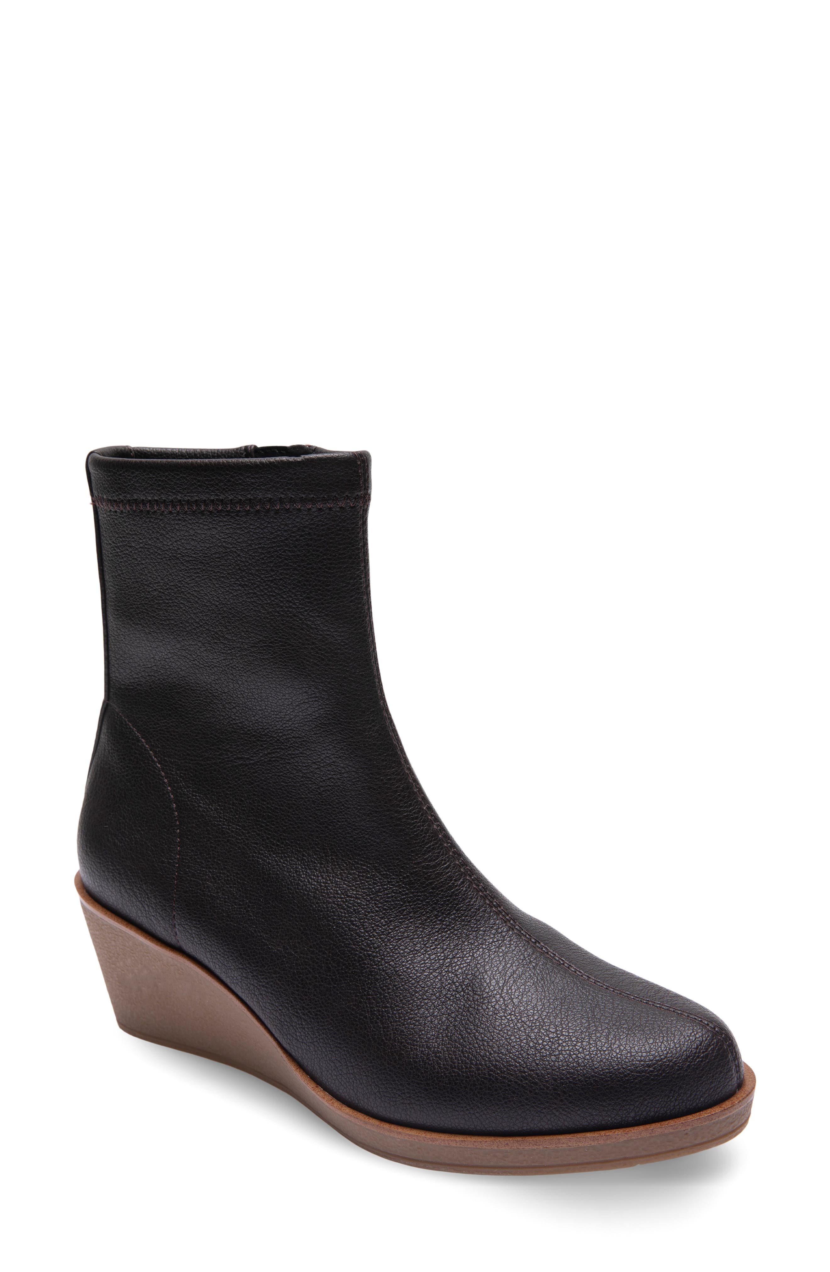 AEROSOLES Binnie Wedge Bootie In Java Stretch Pebbled Faux Leather - Poly