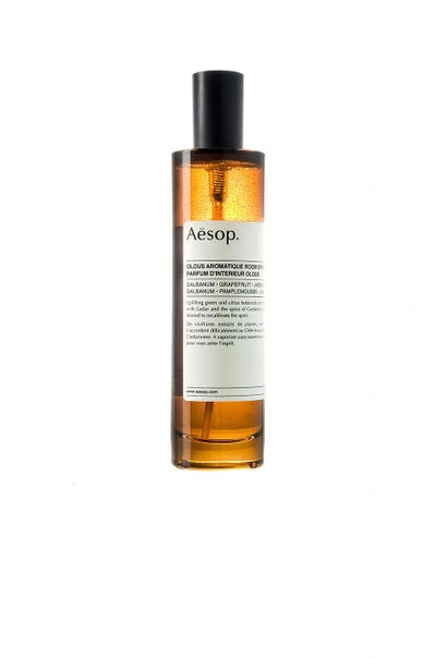 Aesop Olous Aromatique Room Spray in Beauty: NA. Aesop Olous Aromatique Room Spray in Beauty: NA. An olfactory blend basking in the bliss of freshly cut citrus botanicals warmly kissed by Cedar and Cardamom, this versatile spray refreshes any immediate space, encompassing you into boundless, peaceful silence.. Scent profile: fresh, woody, citrus. Key Ingredients: Galbanum, Grapefruit, Jasmine. Aroma lasts for several hours. 3.4 fl oz. Spray two to three pumps throughout the immediate space and refresh as needed. AESR-WU55. B100FR19N. Established in Melbourne in 1987, Aesop aims to formulate skin, hair, and body care products of the highest quality. With safety and efficacy in mind, the brand sources a wide variety of plant-based and laboratory-engineered ingredients to create cutting edge formulas that promote a healthy and balanced routine. In addition to encouraging proactive self-care, Aesop believes in enriching one?s lifestyle with art and design. This resonates through the brand?s unique apothecary-inspired packaging that transforms any bathroom into a chic spa experience.