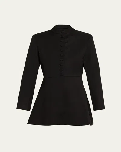 AEXAE sleek wool jacket dress adorned with covered buttons Stand collar Structured shoulders Long sleeves Aline silhouette Hem falls above the knee Wool Dry clean Imported