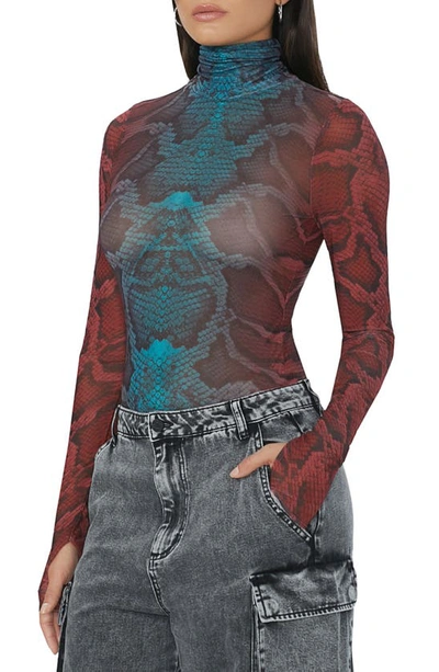 AFRM Zadie Mesh Turtleneck Top In Fig Snake