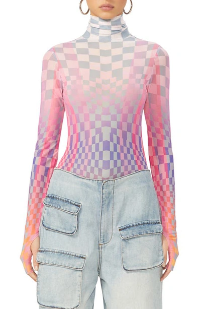 Zadie Mesh Turtleneck Top In Grid Ombre
