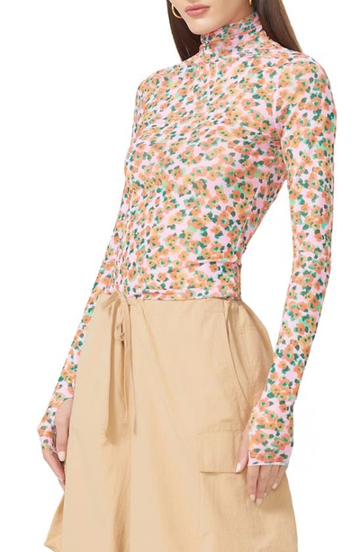 Zadie Mesh Turtleneck Top In High Summer Ditsy